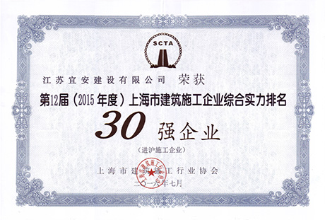 宜安公司連續九次入選上海市建筑施工企業“30強” |